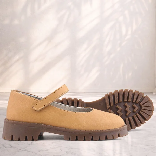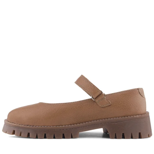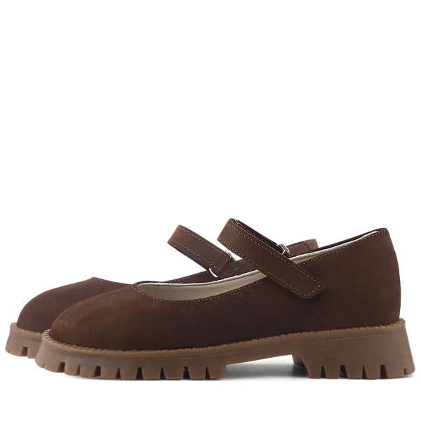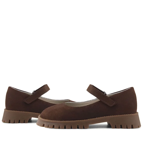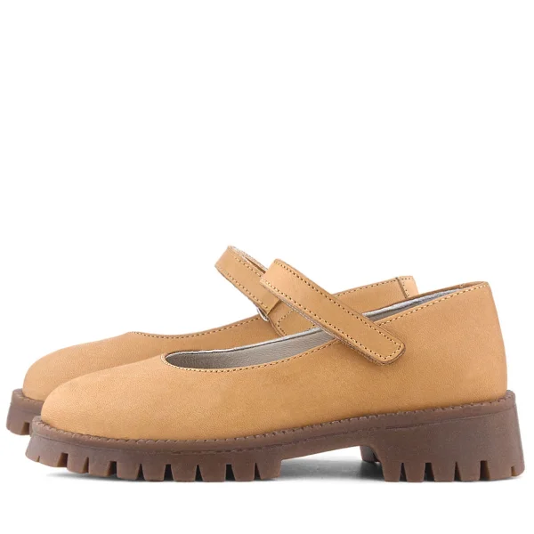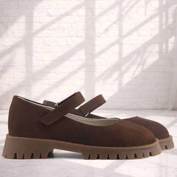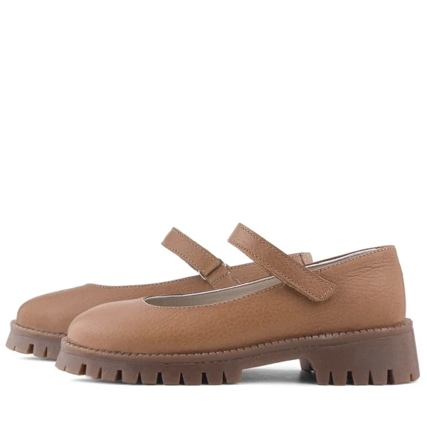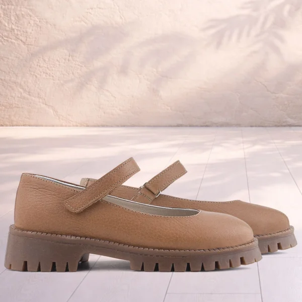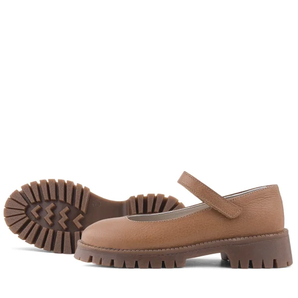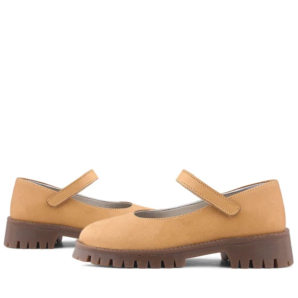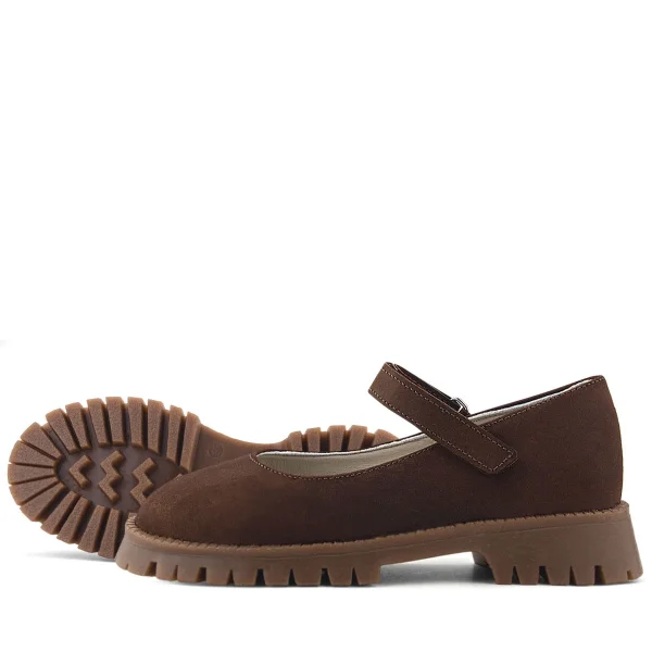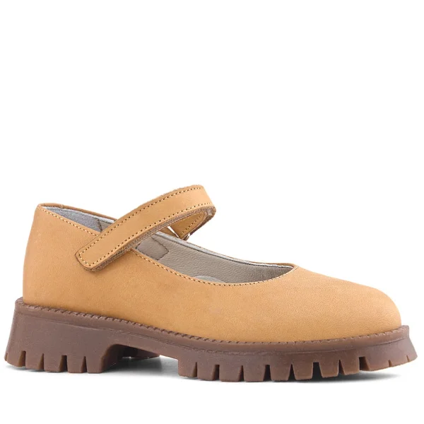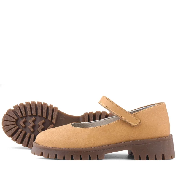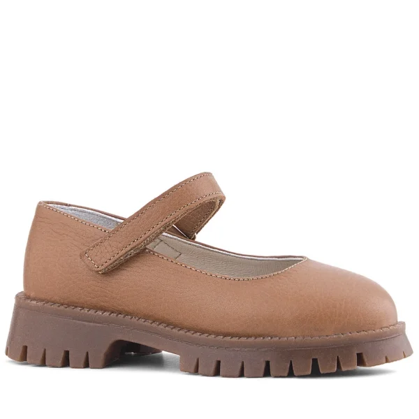 Doğal Gerçek Deri Kahverengi Kız Çocuk Babet Ayakkabı