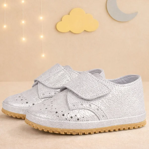 Hakiki Deri Gümüş Gri Cırtlı Bebek Patik Ayakkabı