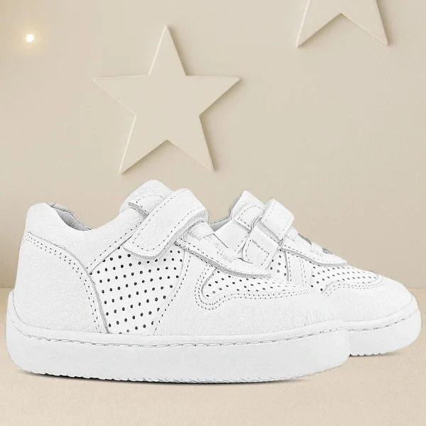 Rakerplus Bob Hakiki Deri Beyaz Barefoot Beyaz Tabanlı Cırtlı Bebek Sneaker Ayakkabı