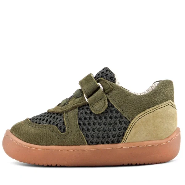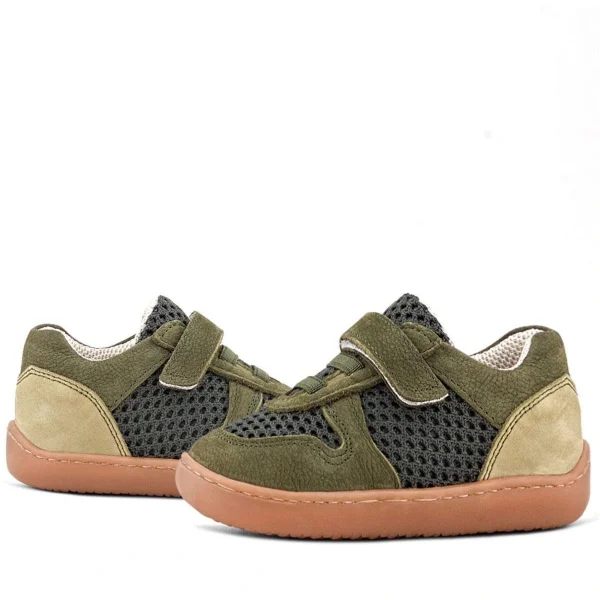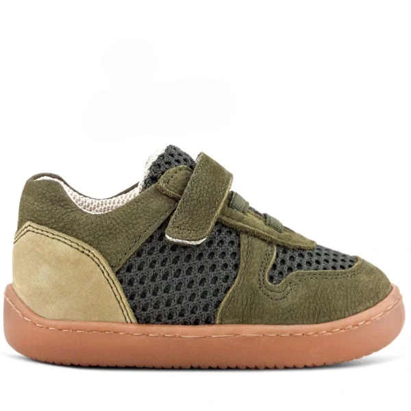Rakerplus Bob Hakiki Deri Haki Yeşil Barefoot Cırtlı Lastikli Bebek Sneaker Ayakkabı