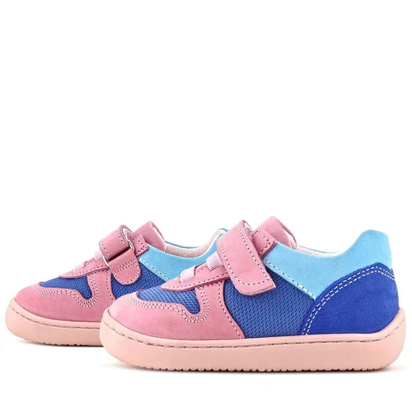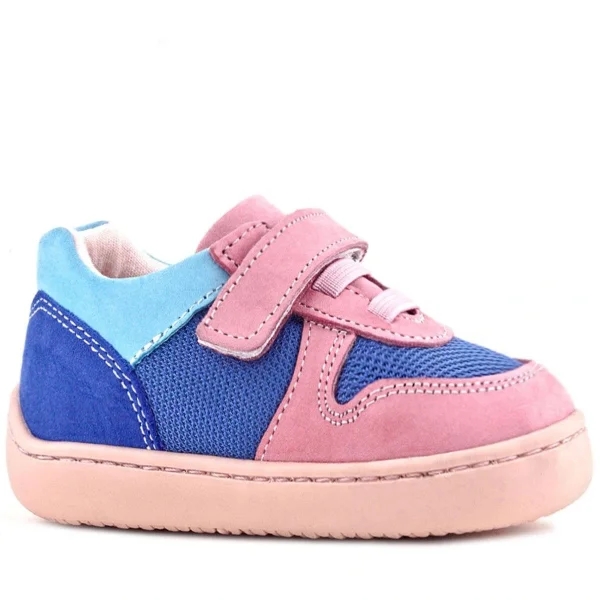 Rakerplus Bob Hakiki Deri Mavi Pembe Barefoot Cırtlı Lastikli Bebek Sneaker Ayakkabı