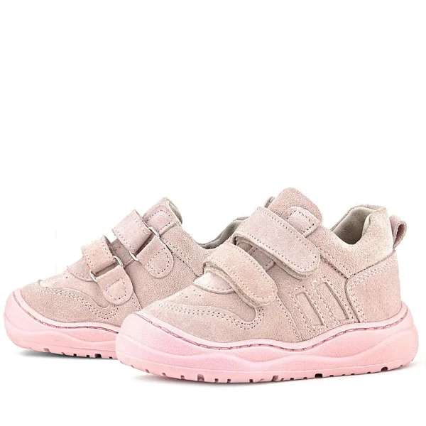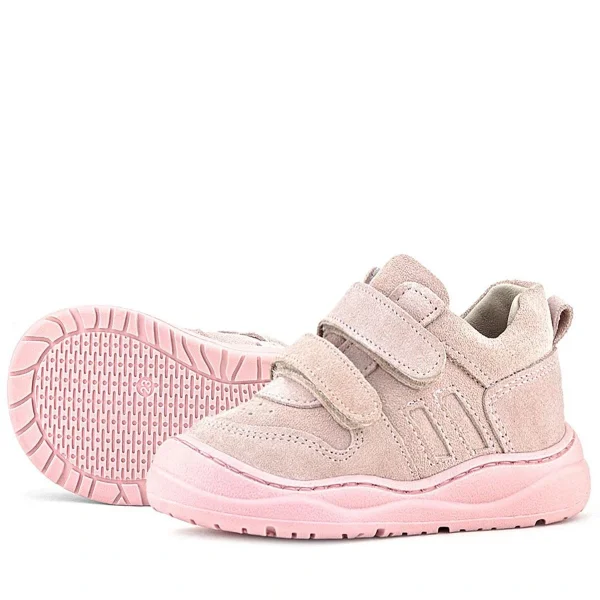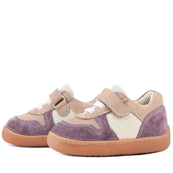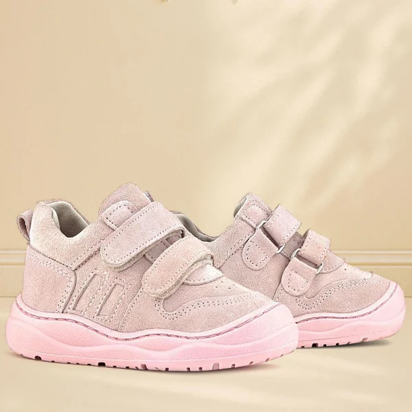 Rakerplus Bob Hakiki Deri Mor Pudra Barefoot Cırtlı Lastikli Bebek Sneaker Ayakkabı
