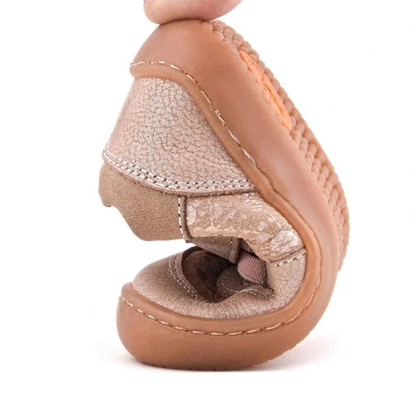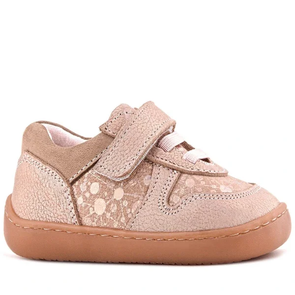 Rakerplus Bob Hakiki Deri Pudra Simli Barefoot Cırtlı Lastikli Bebek Sneaker Ayakkabı