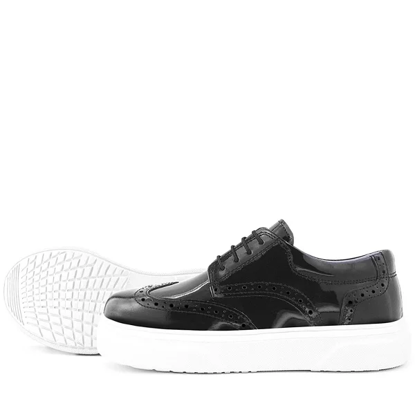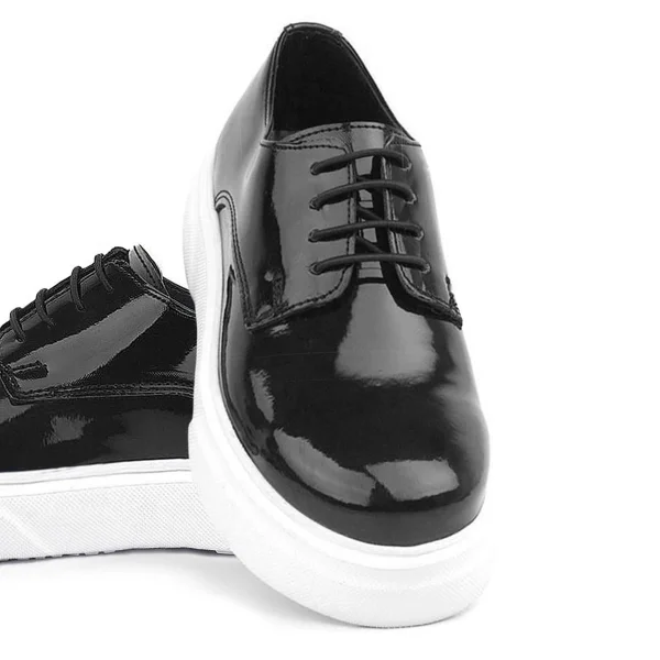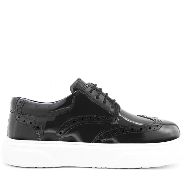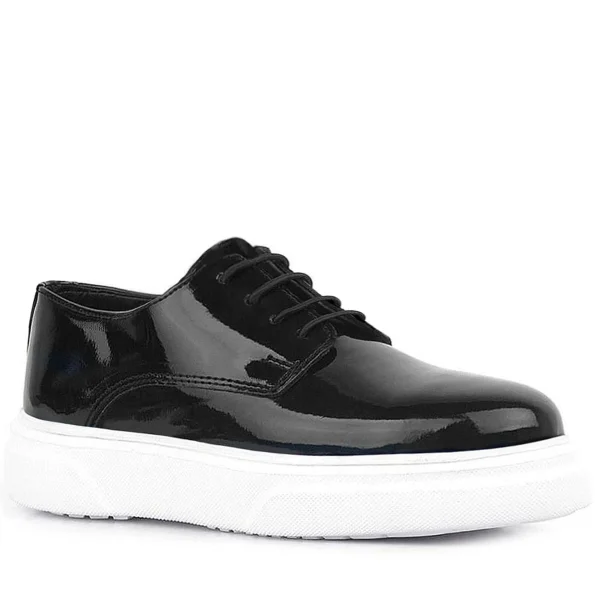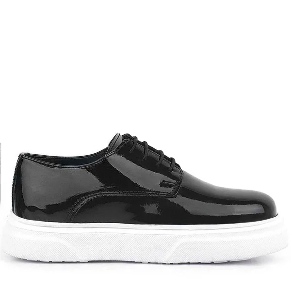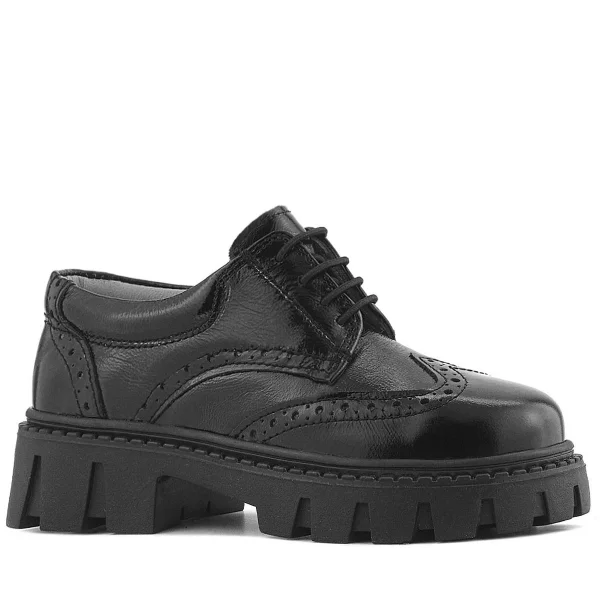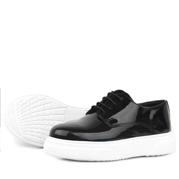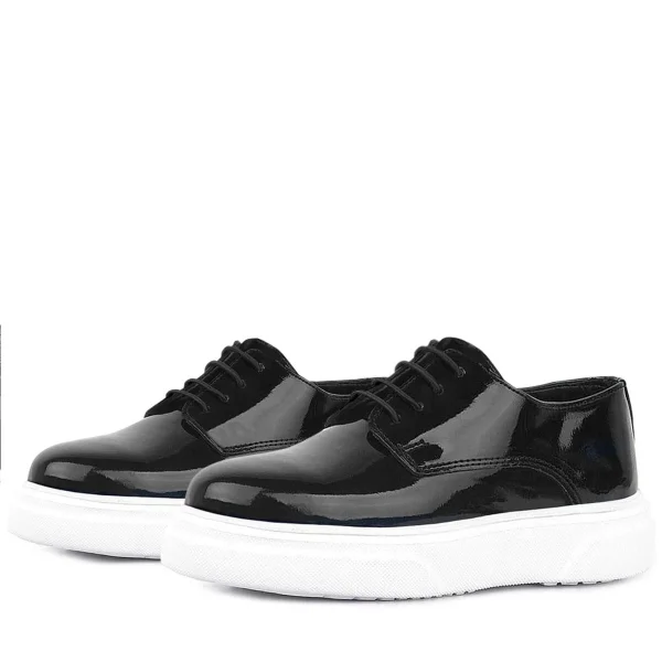 Rakerplus Hakiki Deri Siyah Kırışık Rugan Oxford Çocuk Günlük Ayakkabı