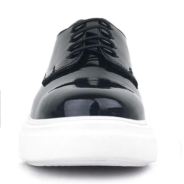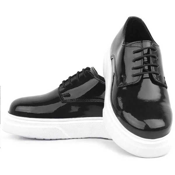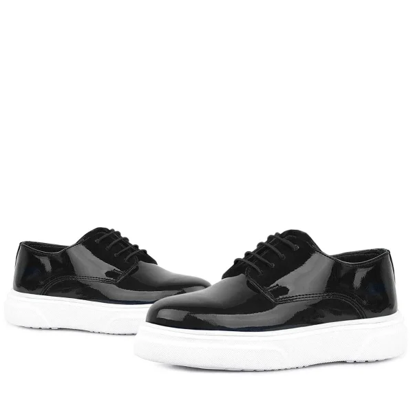 Rakerplus Derby Hakiki Deri Siyah Rugan Beyaz Taban Çocuk Klasik Ayakkabı