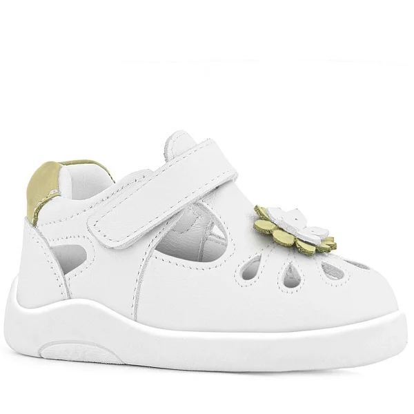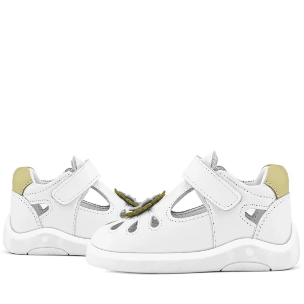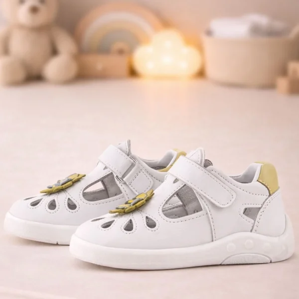 Rakerplus Hakiki Deri Anatomik Beyaz Cırtlı Kız Bebek Sandalet Ayakkabı