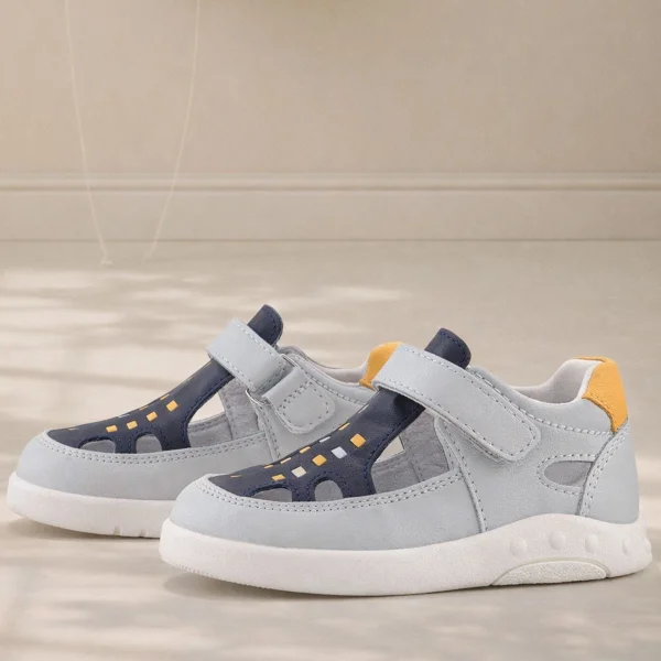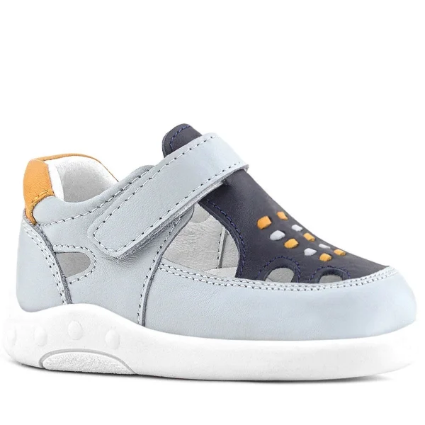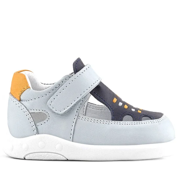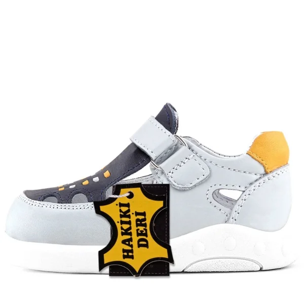 Rakerplus Shaun Hakiki Deri Lacivert Beyaz Cırtlı Anatomik Bebek Sandalet