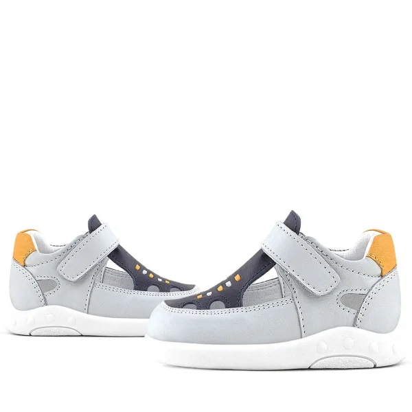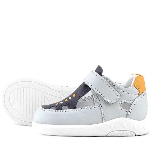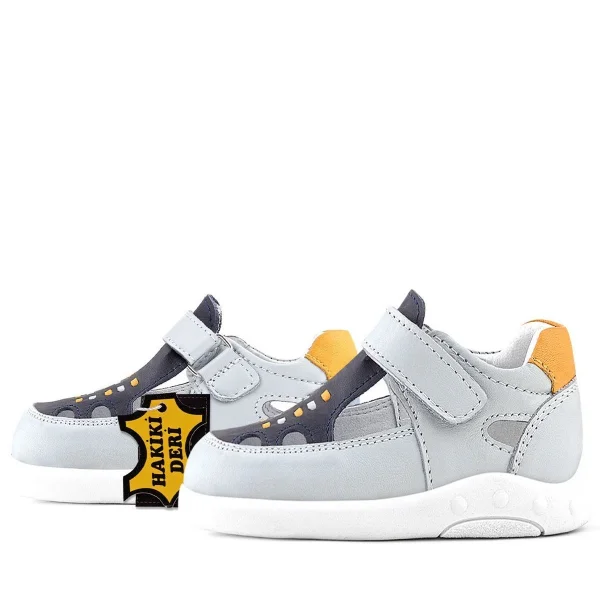 Rakerplus Hakiki Deri Anatomik Gri Cırtlı Bebek Sandalet Ayakkabı