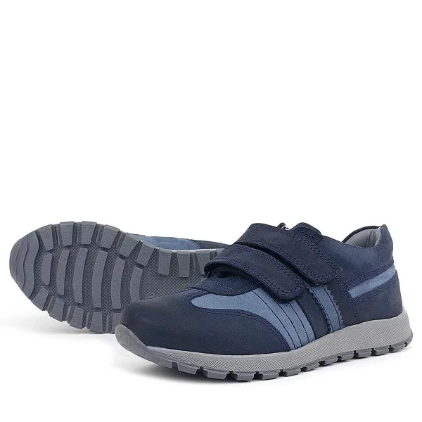 Rakerplus Hakiki Deri Lacivert Desenli Cırtlı Kalın Tabanlı Kız Çocuk Ayakkabısı