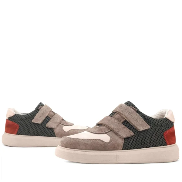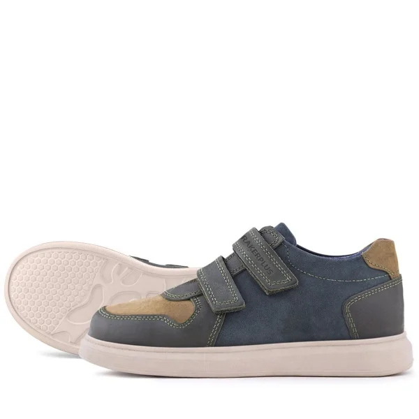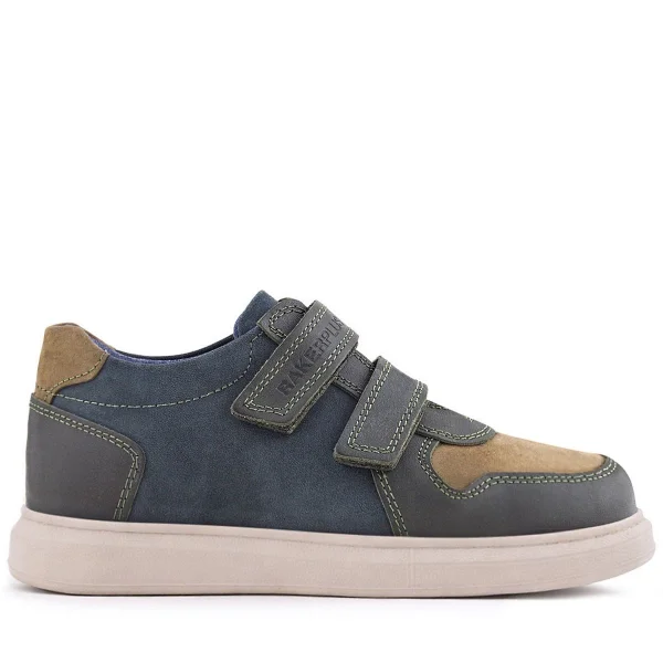 Rakerplus Hakiki Deri Haki Yeşil Cırtlı Hafif Tabanlı Erkek Çocuk Spor Ayakkabı