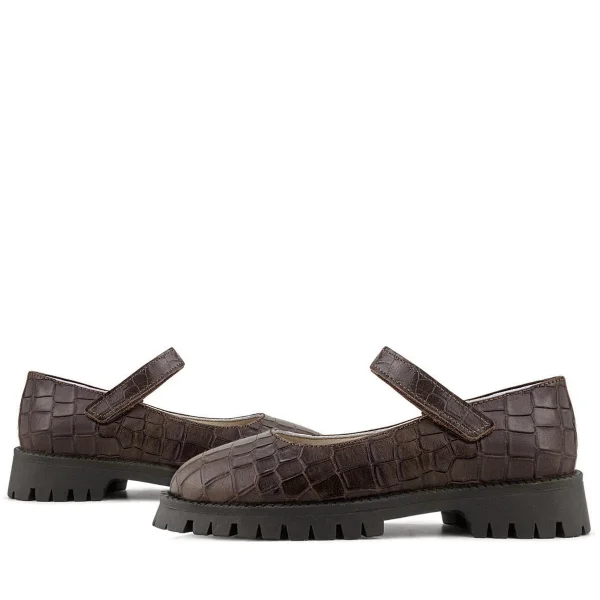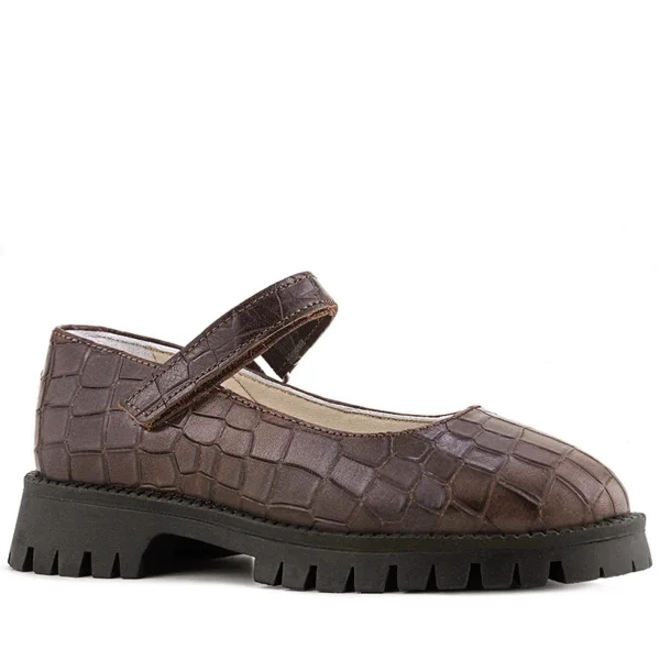 Rakerplus Hakiki Deri Kahverengi Desenli Cırtlı Kalın Tabanlı Kız Çocuk Ayakkabısı
