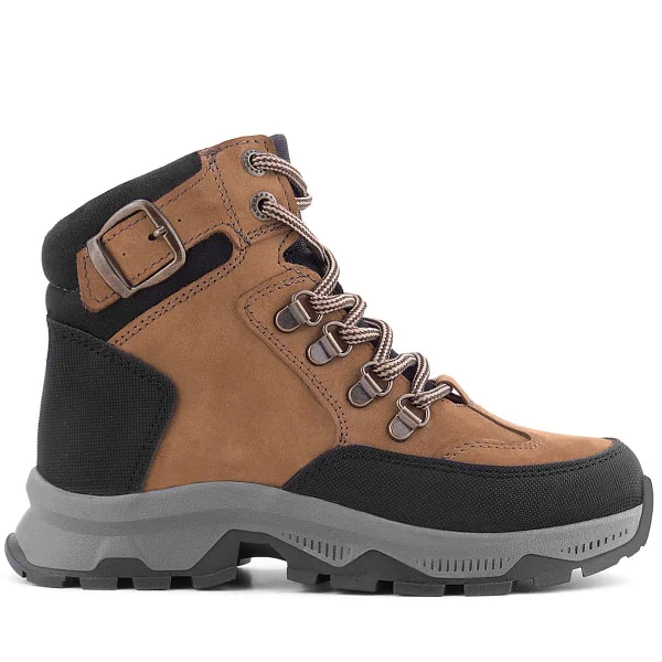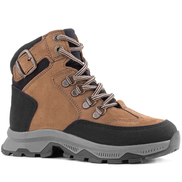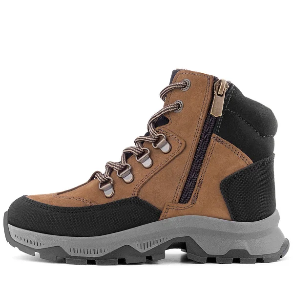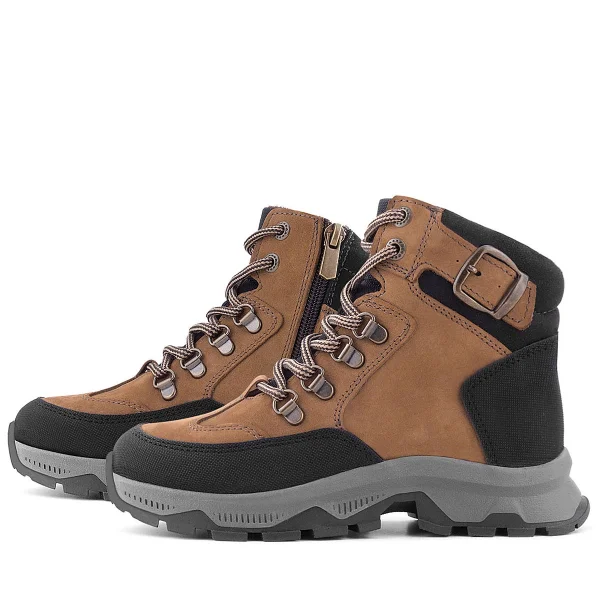 Rakerplus Hakiki Deri Kahverengi Siyah Bağcıklı Fermuarlı Trekking Çocuk Bot