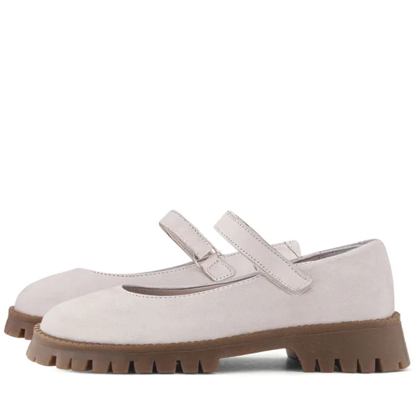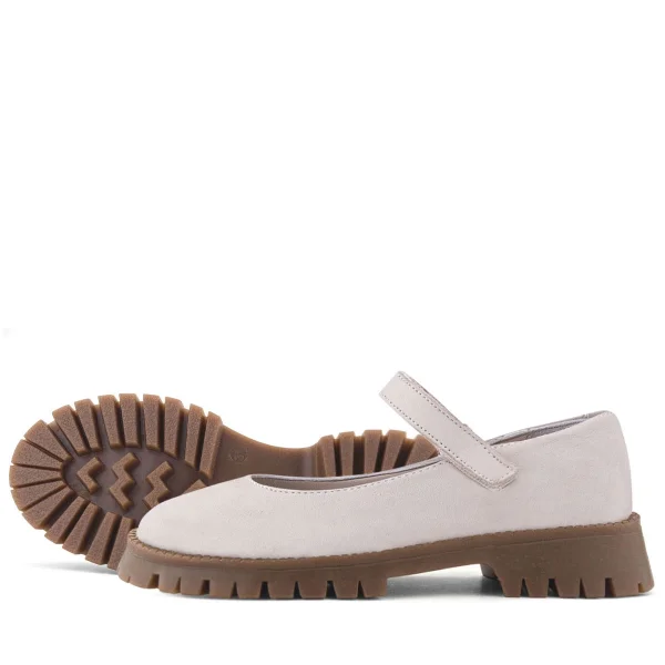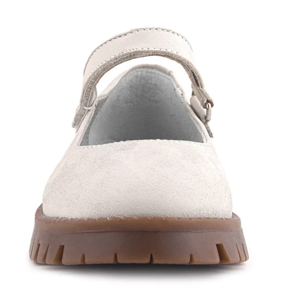 Rakerplus Hakiki Deri Krem Nubuk Cırtlı Kalın Tabanlı Kız Çocuk Okul Ayakkabısı