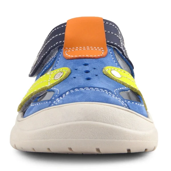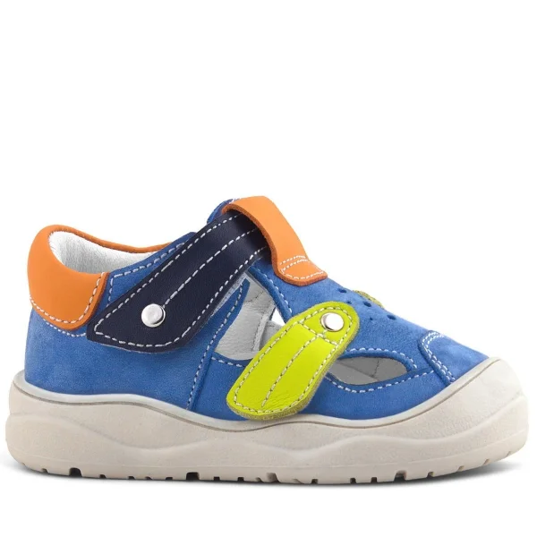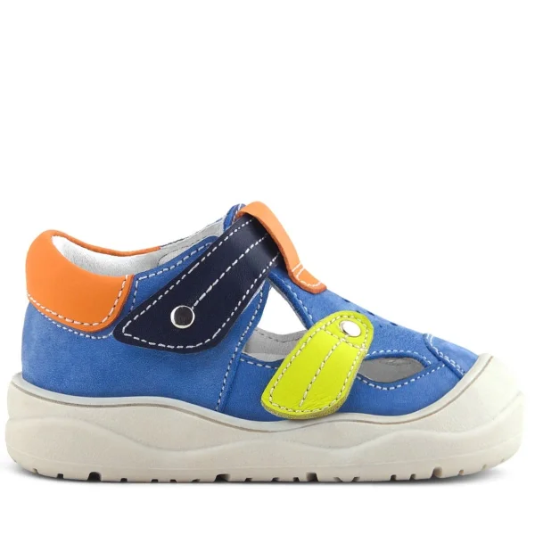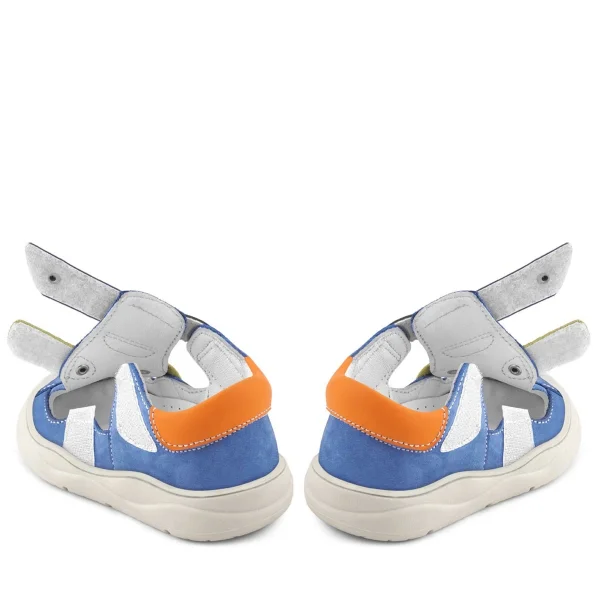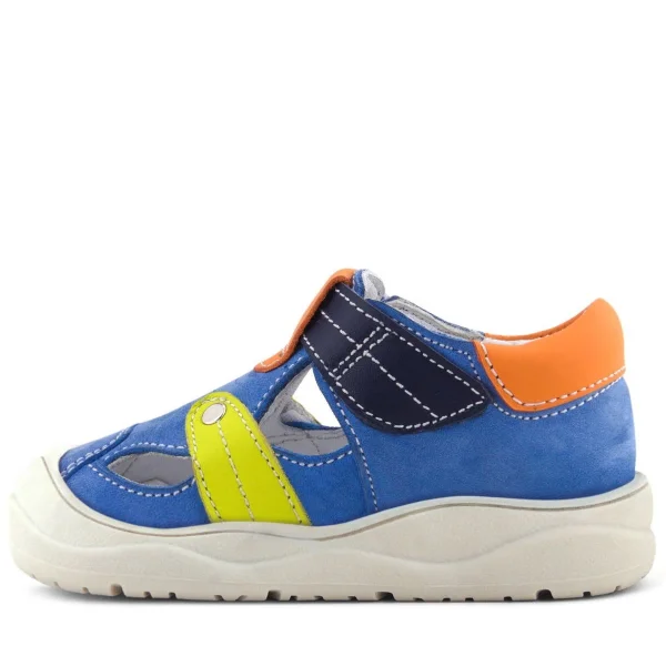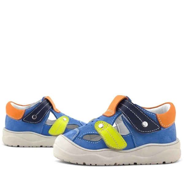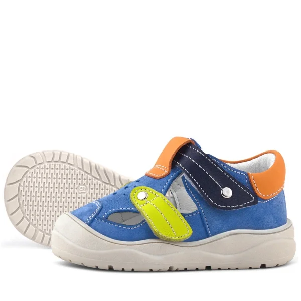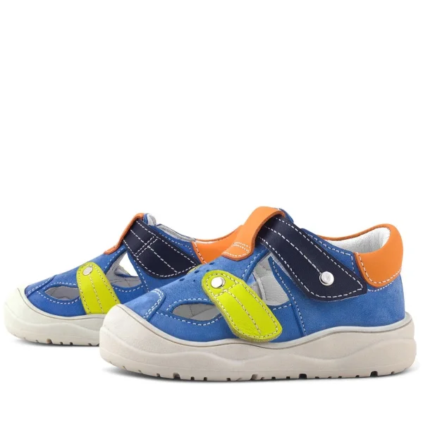Rakerplus Hakiki Deri Mavi Turuncu Cırt Cırtlı Bebek Sandalet
