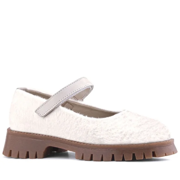 Rakerplus Krem Cırtlı Kalın Tabanlı Kız Çocuk Peluş Babet Ayakkabısı