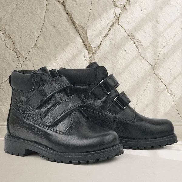 Rakerplus Hakiki Deri Siyah Cırt Cırtlı Bebek Bot