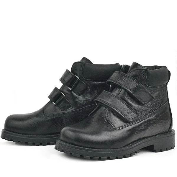 Rakerplus Neson Hakiki Deri Siyah Rugan Cırtlı Kız Çocuk Bot