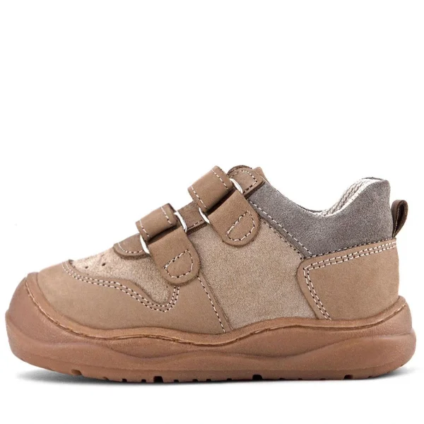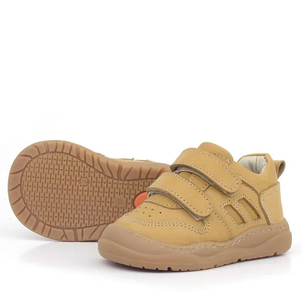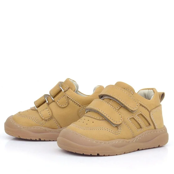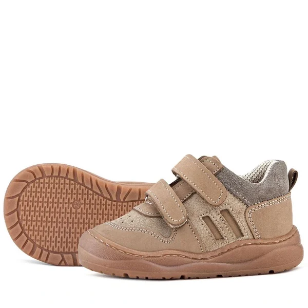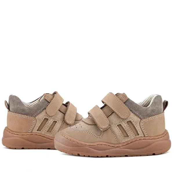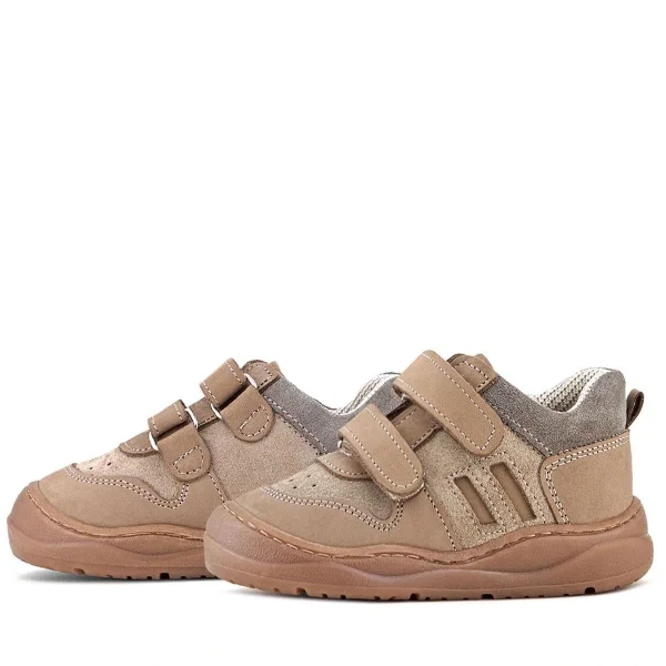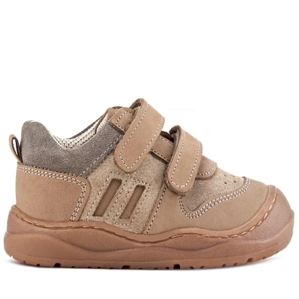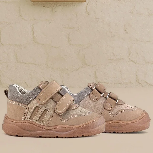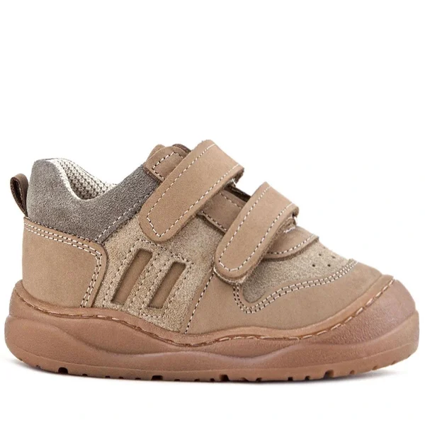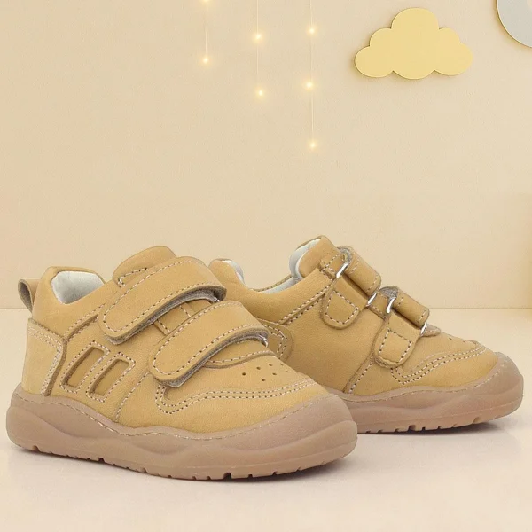 Rakerplus Bob Hakiki Deri Taba Krem Barefoot Cırtlı Lastikli Bebek Sneaker Ayakkabı