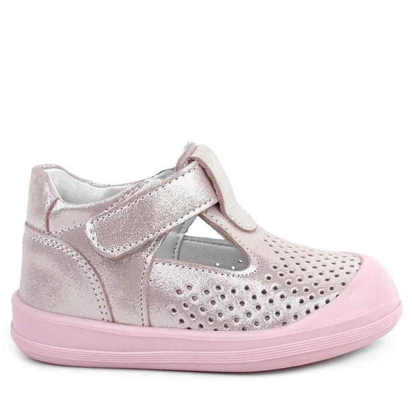 Rakerplus Shaun Hakiki Deri Pembe Simli Cırtlı Anatomik Bebek Sandalet Ayakkabı