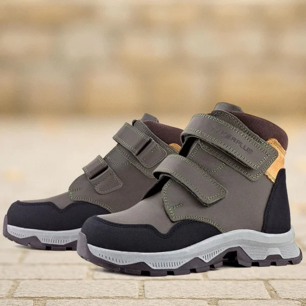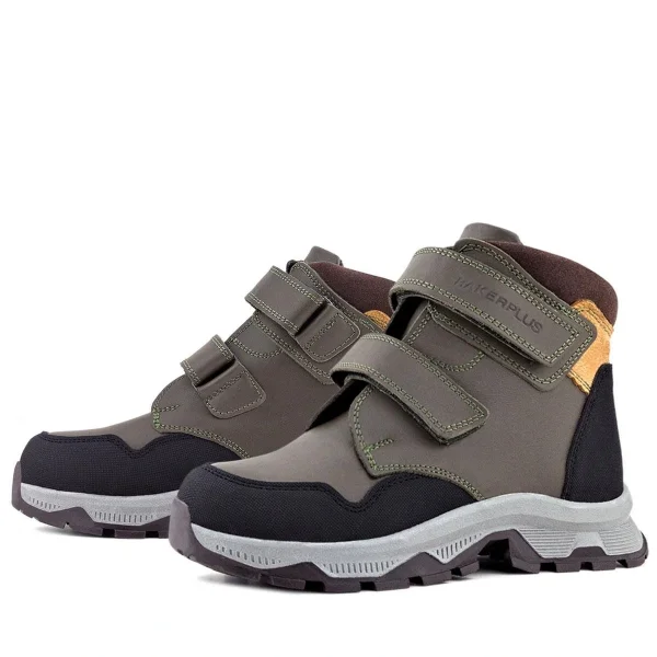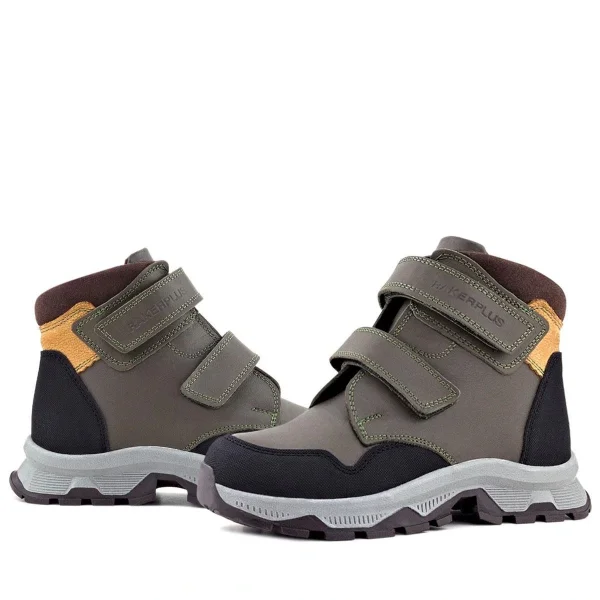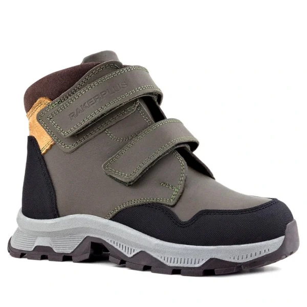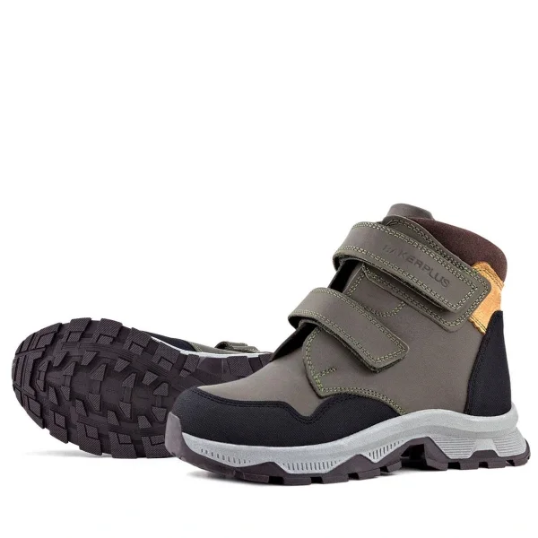 Rakerplus Trekking Hakiki Deri Haki Yeşil Sarı Cırt Cırtlı Erkek Çocuk Bot