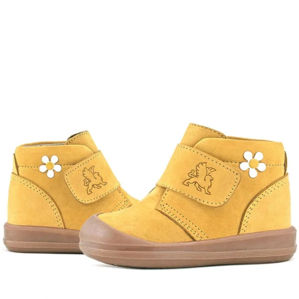 Rakerplus Yoohoo Hakiki Deri Sarı Cırtlı Papatya Detaylı Unisex Bebek Bot