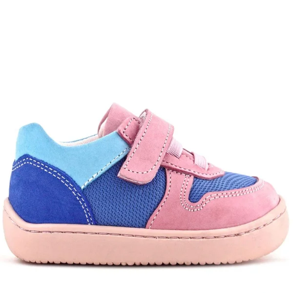 Rakerplus Bob Hakiki Deri Mavi Pembe Barefoot Cırtlı Lastikli Bebek Sneaker Ayakkabı