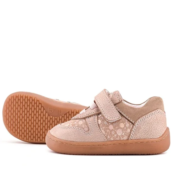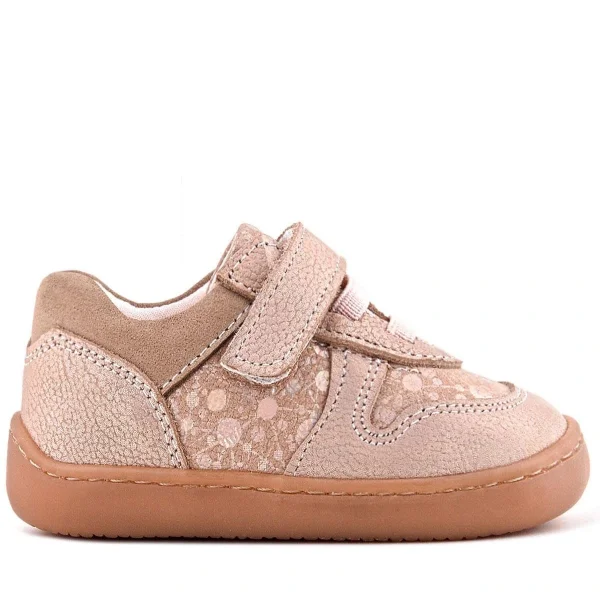 Rakerplus Bob Hakiki Deri Pudra Simli Barefoot Cırtlı Lastikli Bebek Sneaker Ayakkabı