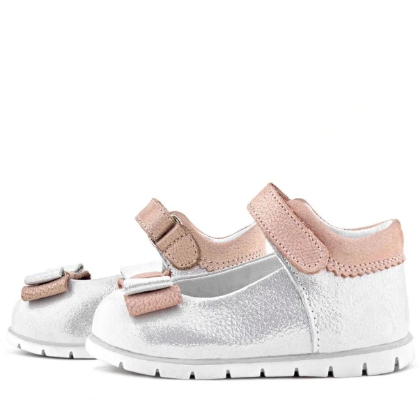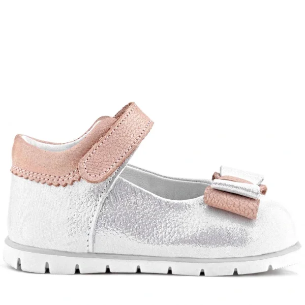 Nino Hakiki Deri Beyaz Gümüş Cırtlı Yazlık İlk Adım Ayakkabı