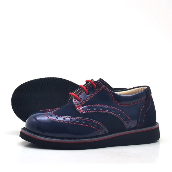 Rakerplus Hidra Lacivert Kırmızı Rugan Klasik Erkek Bebek Ayakkabı