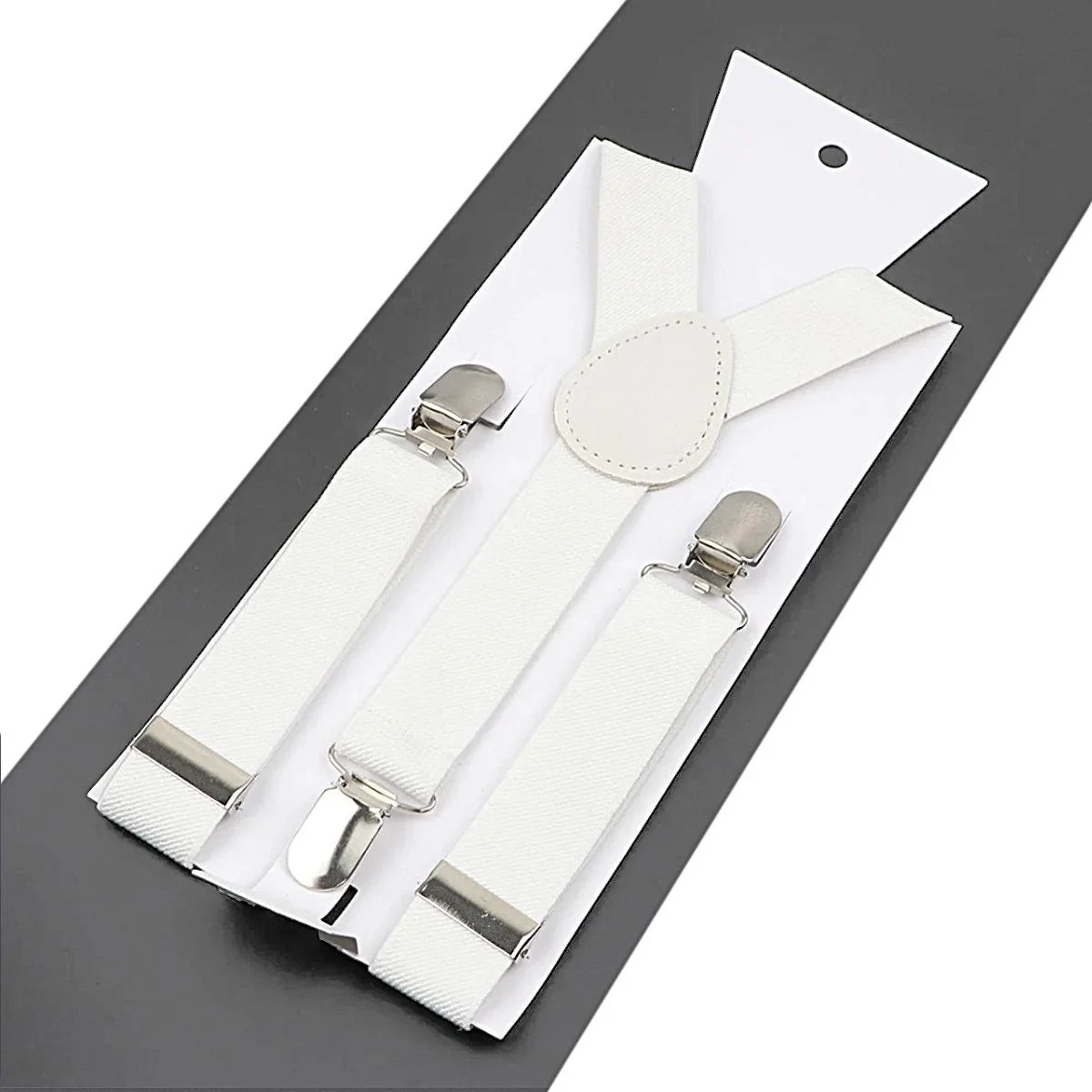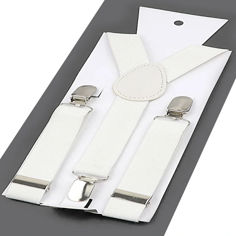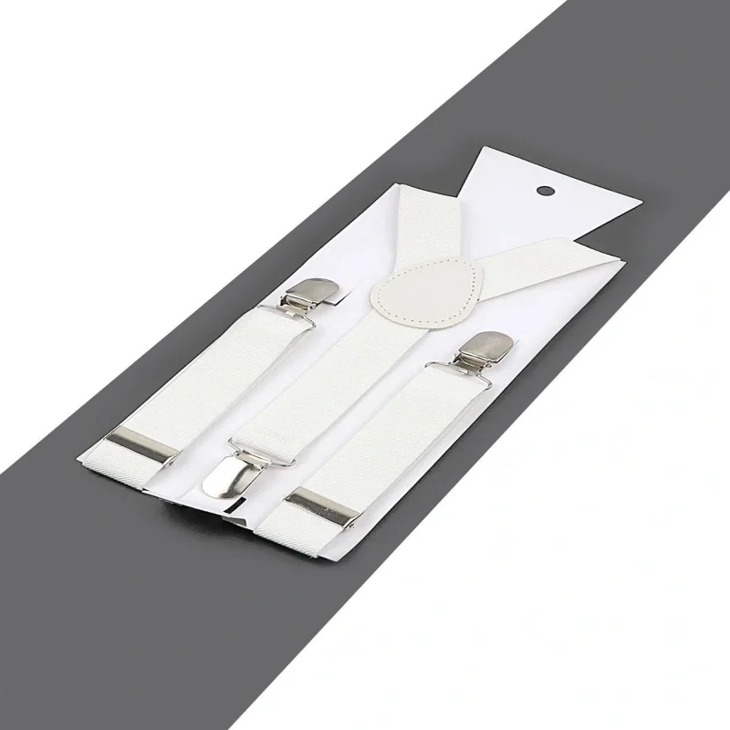 Beyaz Düz 3 Klipsli Elastik Çocuk Kemer Pantolon Askısı