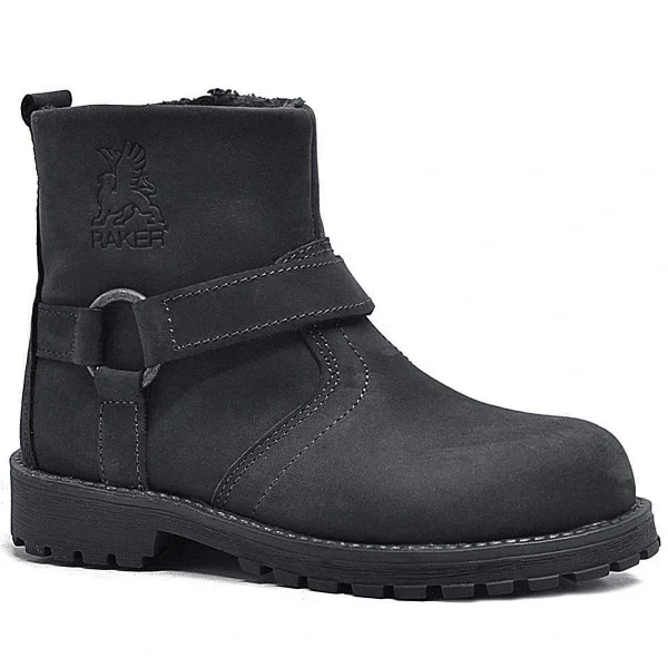 Rakerplus Sentor Hakiki Deri Siyah Kürklü Cırtlı Çocuk Bot