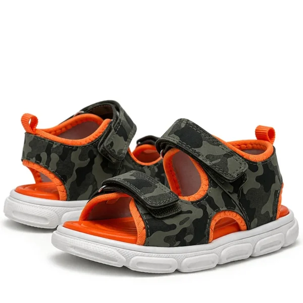 Rakerplus Haki Kamuflaj Desenli Cırtlı Bebek Sandalet Ayakkabı