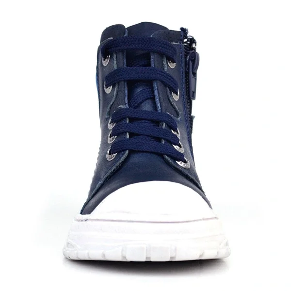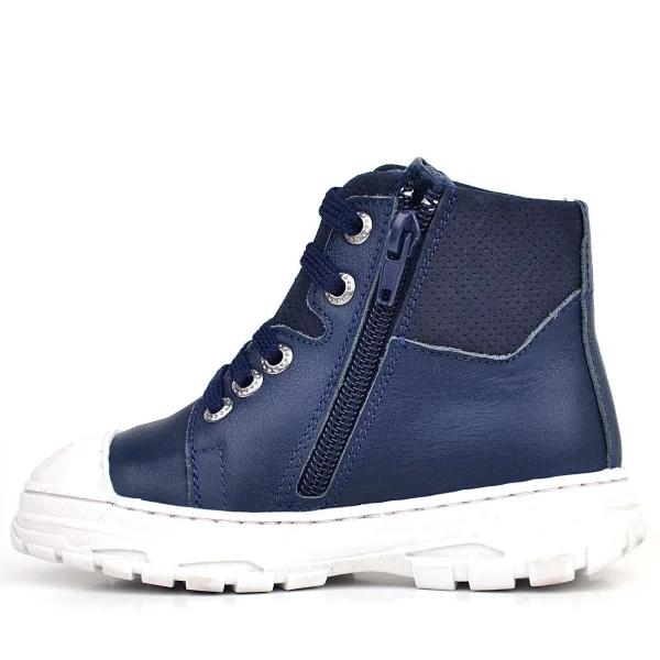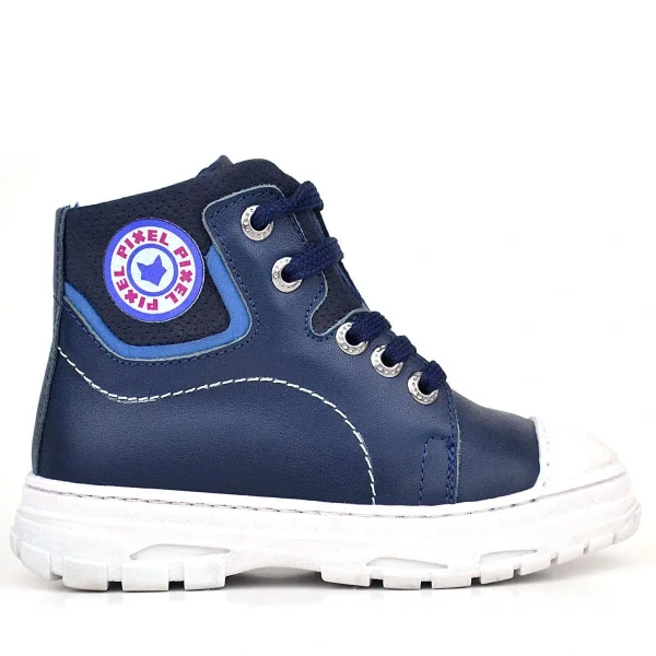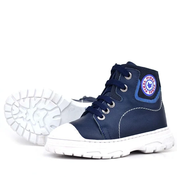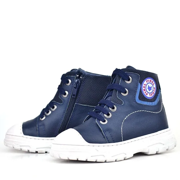 Hakiki Deri Pixel Koyu Lacivert Bağcıklı Fermuarlı Çocuk Bot