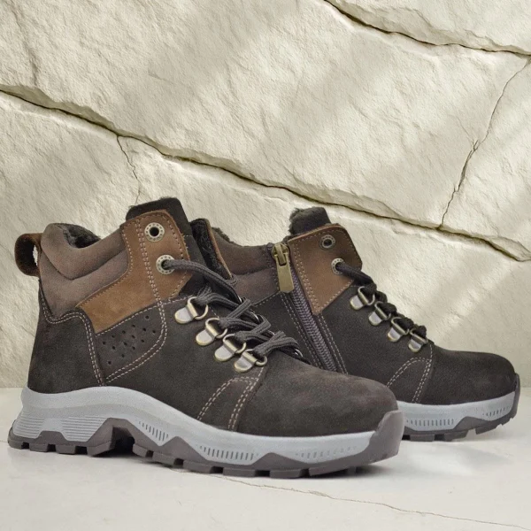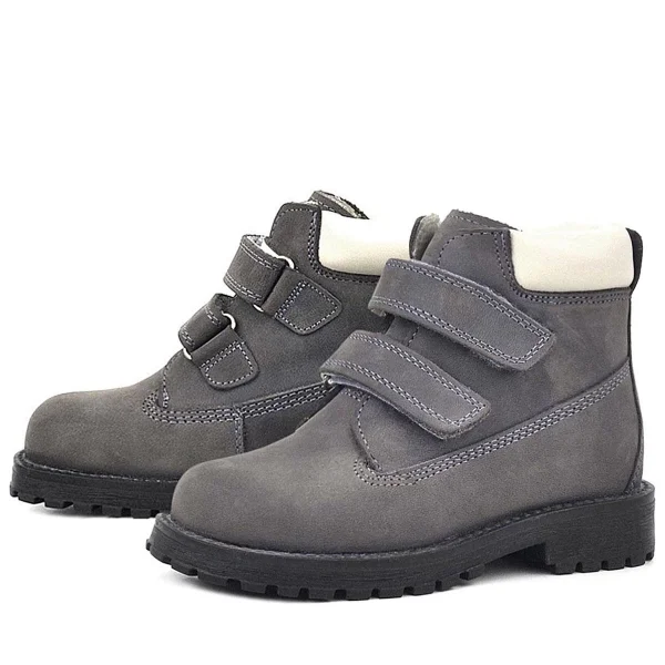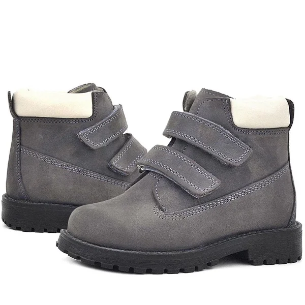 Rakerplus Hakiki Deri Gri Bağcıklı Fermuarlı Trekking Çocuk Bot