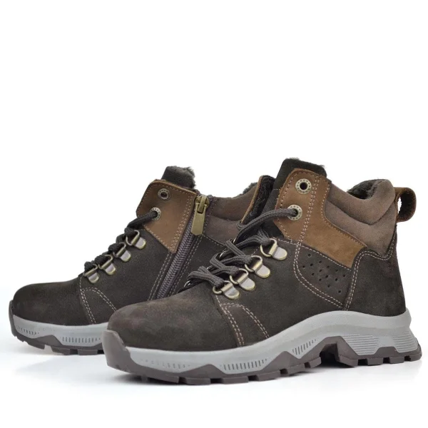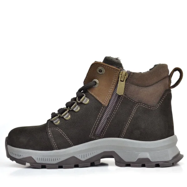Rakerplus Hakiki Deri Taba Bağcıklı Fermuarlı Trekking Çocuk Bot