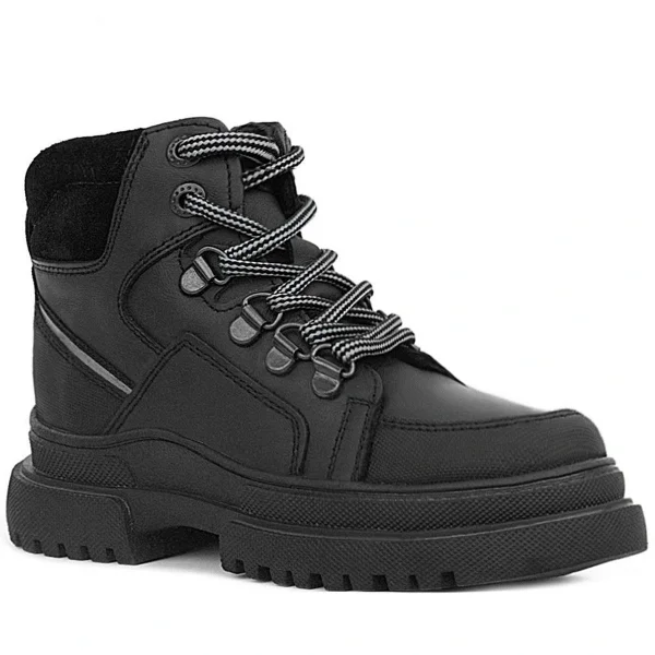 Rakerplus Hakiki Deri Siyah Cilt Fermuarlı Bağcıklı Çocuk Bot
