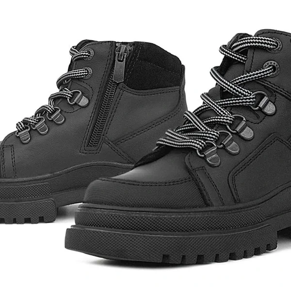 Rakerplus Hakiki Deri Siyah Fermuarlı Trekking Erkek Çocuk Bot