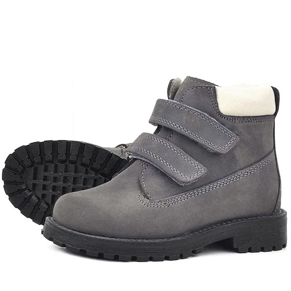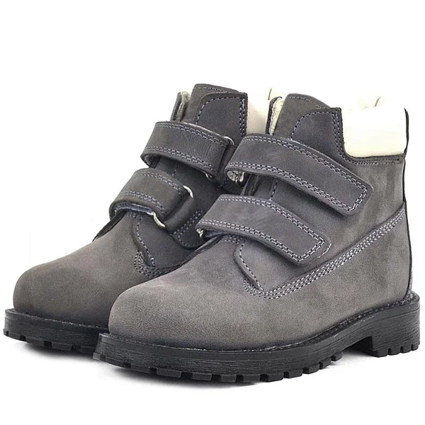 Rakerplus Neson Hakiki Deri Gri Cırtlı Kürklü Çocuk Bot