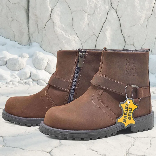 Rakerplus Hakiki Deri Fermuarlı Kışlık Çocuk Bot