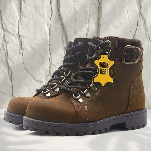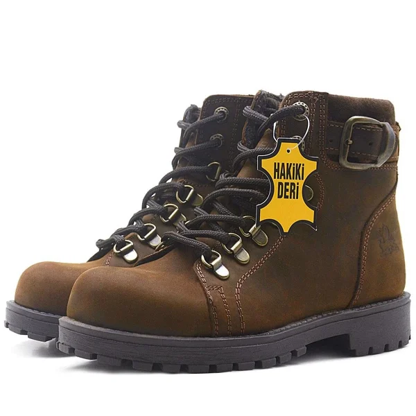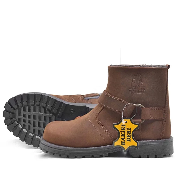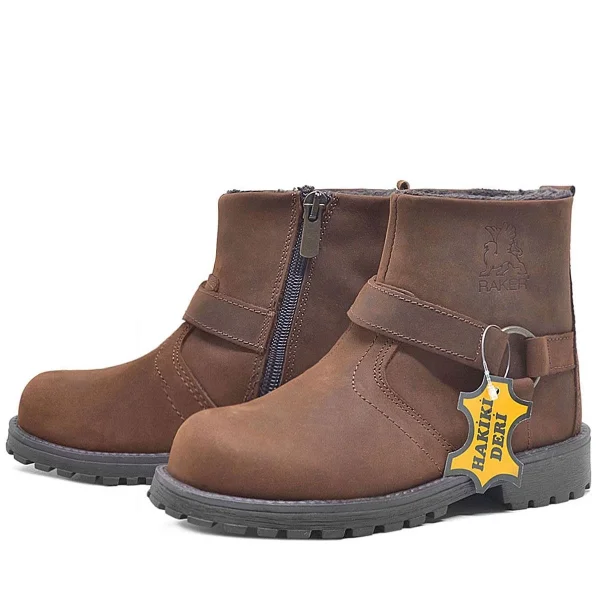 Rakerplus Griffon Hakiki Deri Kahverengi Fermuarlı Kışlık Çocuk Bot