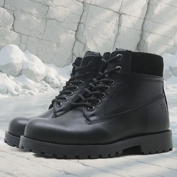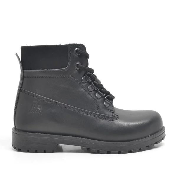 Rakerplus Hakiki Deri Siyah Fermuarlı Bağcıklı Kürklü Bot