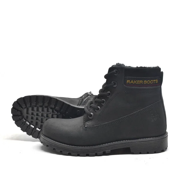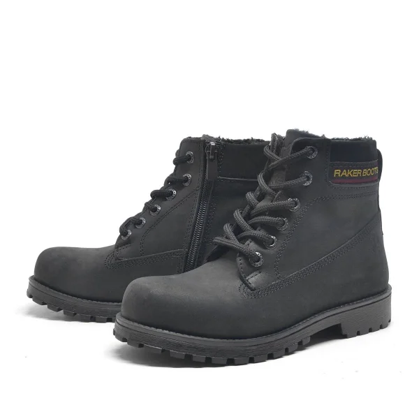 Rakerplus Hakiki Deri Siyah Nubuk Fermuarlı Kışlık Çocuk Bot