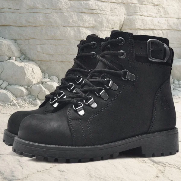 Rakerplus Griffon Hakiki Deri Siyah Fermuarlı Çocuk Bot
