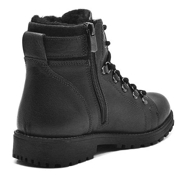 Rakerplus Hakiki Deri Siyah Fermuarlı Kürklü Çocuk Botu