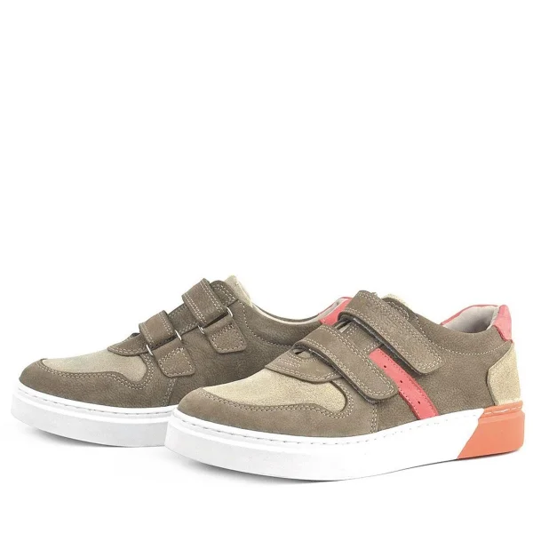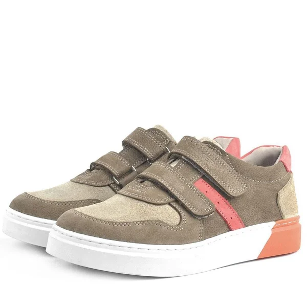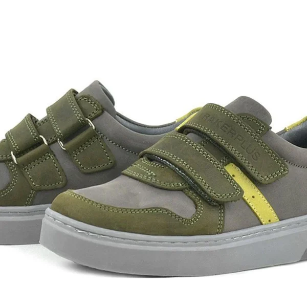 Rakerplus Hakiki Deri Haki Gri Cırtlı Erkek Çocuk Sneaker