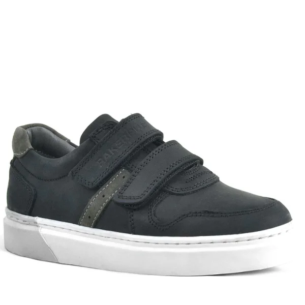 Hakiki Deri Siyah Cırtlı Spor Çocuk Ayakkabı Sneaker