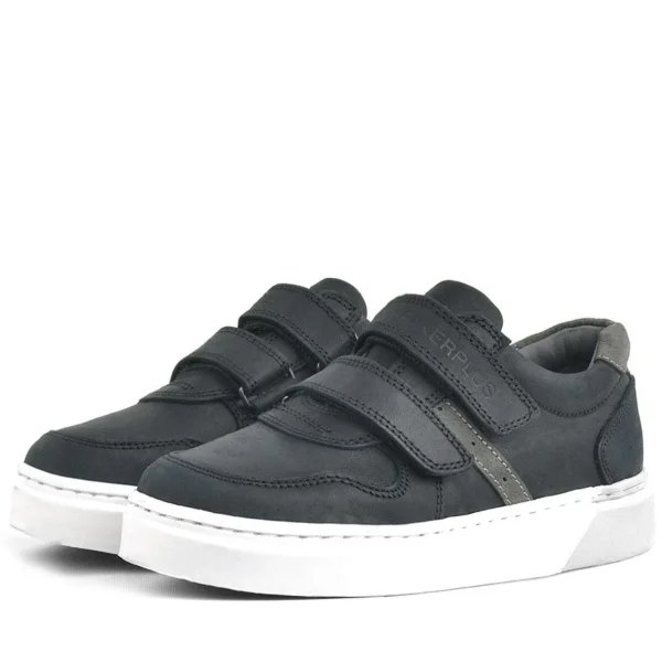 Rakerplus Hakiki Deri Siyah Cırtlı Çocuk Spor Ayakkabı Sneaker