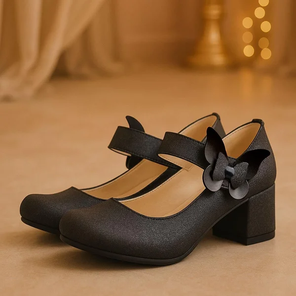 Winx Siyah Işıltılı Kelebekli Kız Çocuk Topuklu Ayakkabı