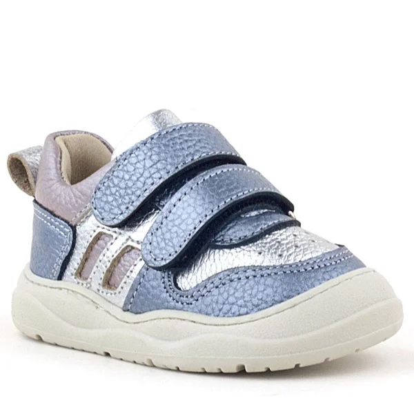 Rakerplus Bob Hakiki Deri Platin Gümüş Barefoot Cırtlı Lastikli Bebek Sneaker Ayakkabı