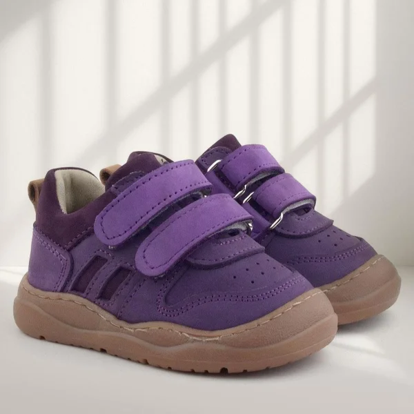 Rakerplus Bob Hakiki Deri Pembe Mor Barefoot Cırtlı Lastikli Bebek Sneaker Ayakkabı